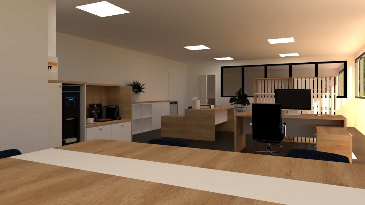 Bureau, magasin, banque d'accueil, présentoir, showroom, open space,...
